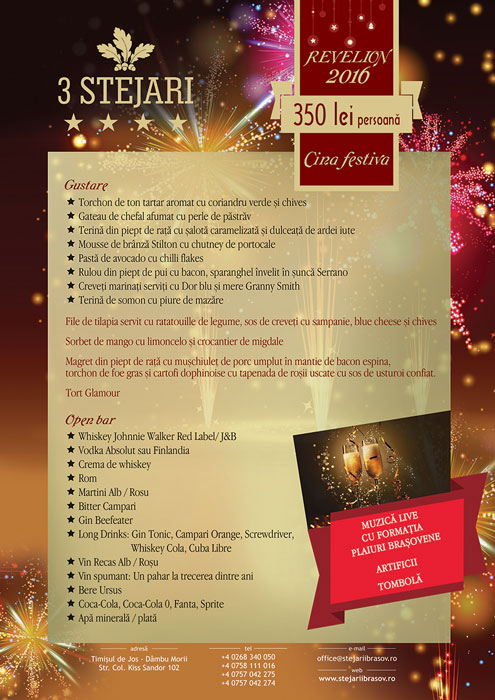 Amplasat intr-o zona ferita de aglomeratia urbana, Restaurantul Stejarii pune la dispozitia dumneavoastra, intr-o ambianta eleganta si rafinata, 150 de locuri pentru organizarea unui eveniment deosebit din viata dumneavoastra. Maestrul bucatar va va surprinde cu cele mai delicioase preparate ale bucatariei traditionale si internationale.