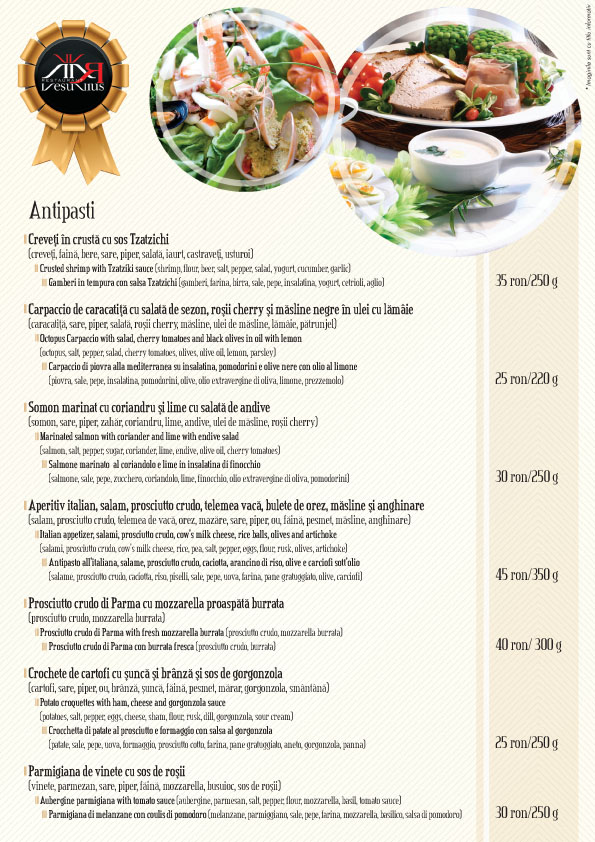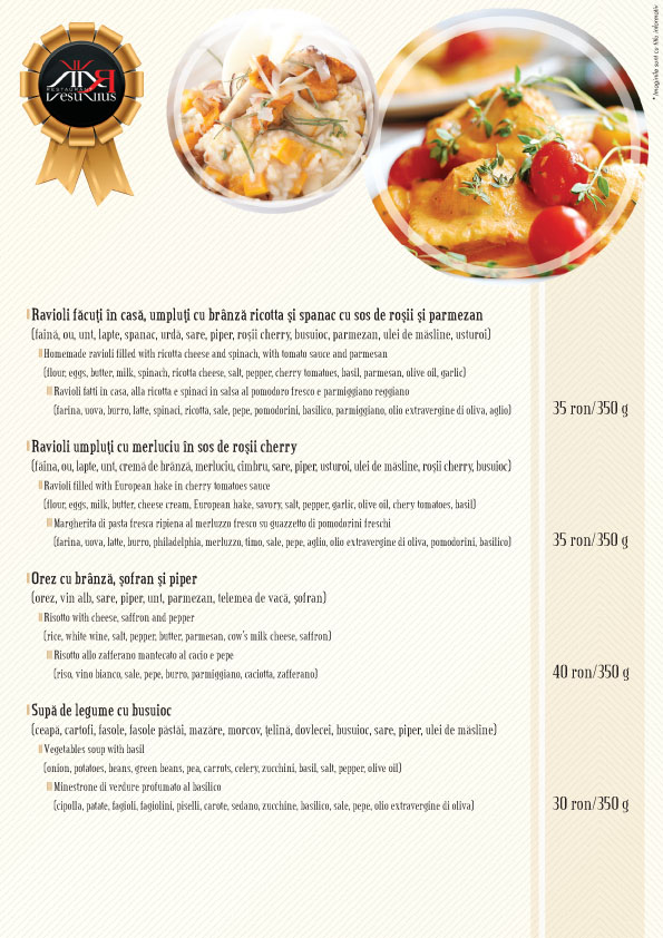 Echipa Restaurantului Vesuvius saluta curiozitatea si inovatia in gastronomie, si va invita sa savurati preparatele atat din curiozitate, cat si pentru a promova un stil de viata sanatos.