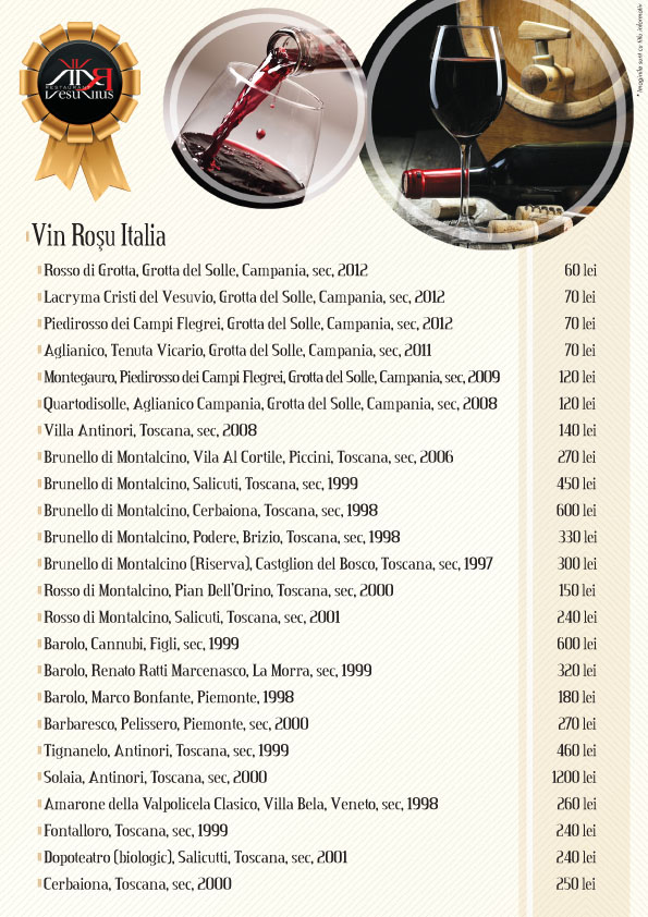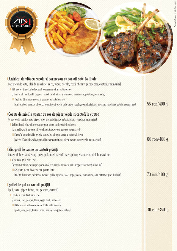 Suntem de parere ca arta gatitului de la Vesuvius este ambitioasa, ca bucataria italiana poseda o anumita puritate, o simplitate esentiala, si credem cu tarie ca bucataria mediteraneeana aduce beneficii semnificative sanatatii dumneavoastra.