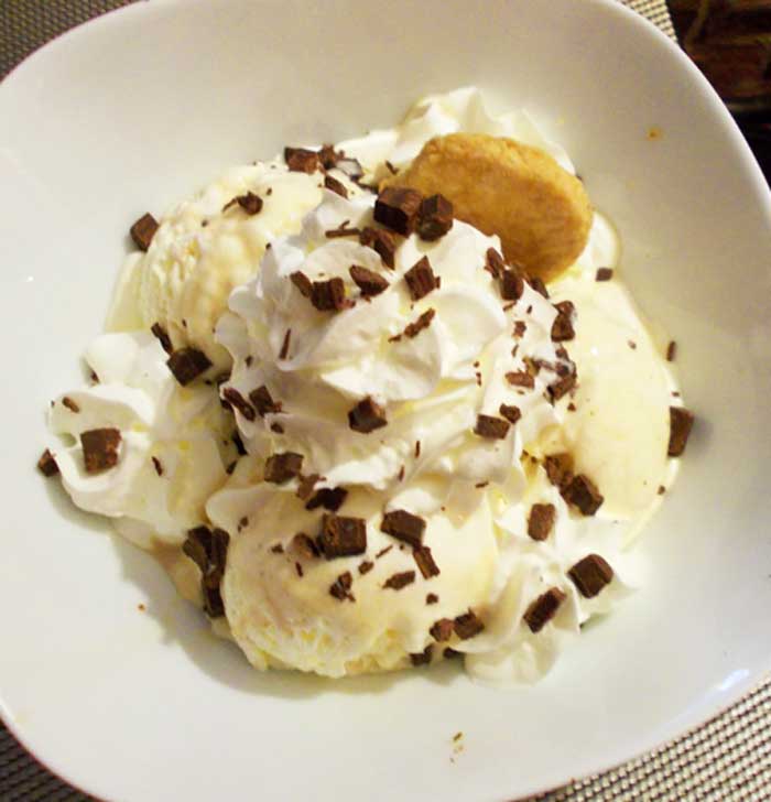 Lava cake pentru iubitori de ciocolata, servita cu frisca proaspata si inghetata casei .......