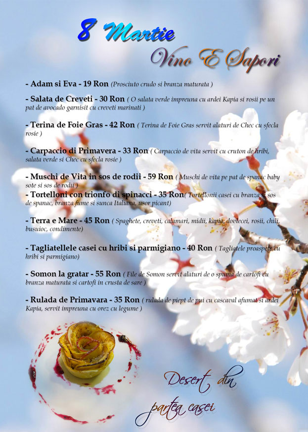 RECOMANDARI DIN MENIUL RESTAURANTULUI VINO E SAPORI