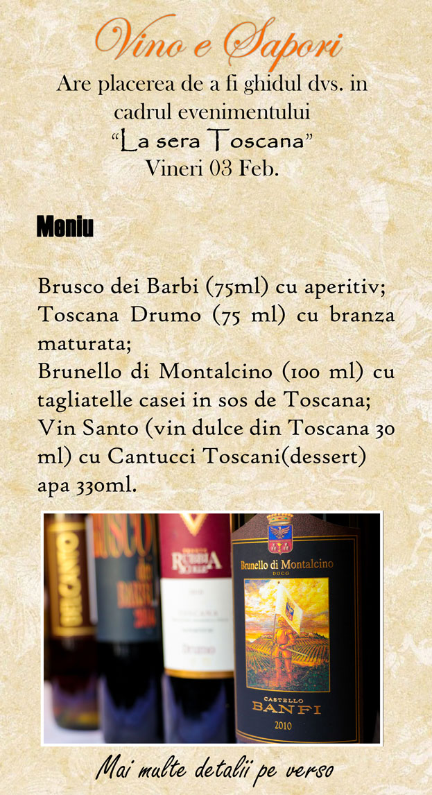 Wine-bar-restaurant cu specific italian unde puteti servi preparate italienesti facute dupa retete 100% originale cu marfa importata direct de administratorii Vino e Sapori, din Italia.