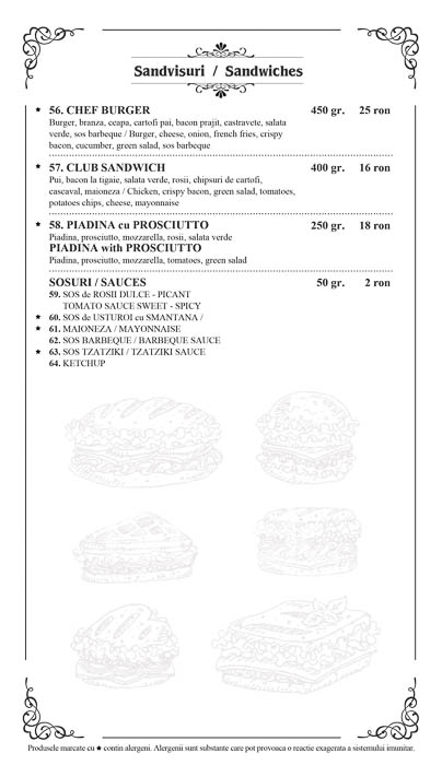 Specialitatile sunt pregatite de castigatorul primei editii Top Chef Romania, Chef Piselli Giovanni. Fiind originar din Napoli, maiestria si talentul i-au fost cultivate mai intai de familie urmand mai apoi cursurile unei prestigioase scoli de bucatari din Italia.