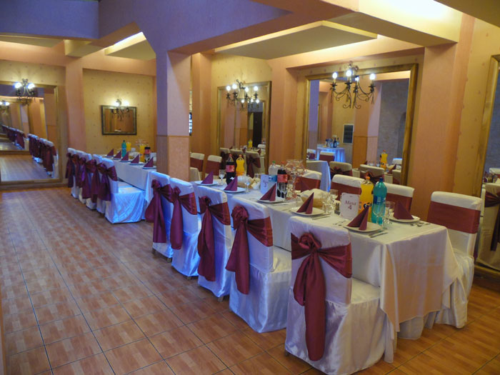 Va oferim gratuit decorarea cu ornamente specifice: huse pentru scaune si mese (peste 12 variante de culori), perdele de lumini, covor rosu, arcada intrare, aranjarea mesei mirilor, inimioara miri, suporti fier forjat pentru lumanari de cununie, suporti pentru aranjamente florale sau lumanar si momente de dans sportiv.