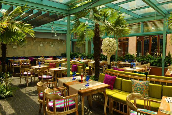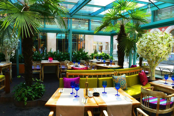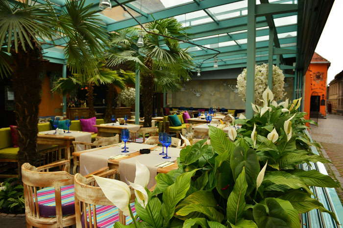 Terasa inchisa in sticla cu palmieri si flori naturale este un adevarat rasfat pentru priviri, o oaza de culoare si lumina. Atunci cand vremea este prietenoasa geamurile se deschid larg lasand la vedere farmecul incontestabil al strazilor pline de turisti din jurul locatiei. Inevitabil, atmosfera de aici este intotdeauna boema si foarte relaxata.