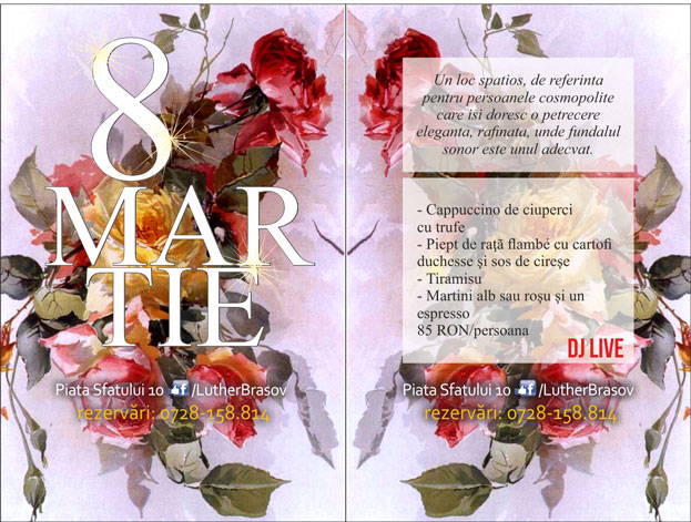 Grand Restaurant sarbatoreste femeile in zilele de 4 Martie (incepand cu ora 20:00) si 8 Martie (incepand cu ora 16:00). Muzica live cu formatiile Ardelenii si Uranus. Show de streaptease cu formatia Fire Balls.